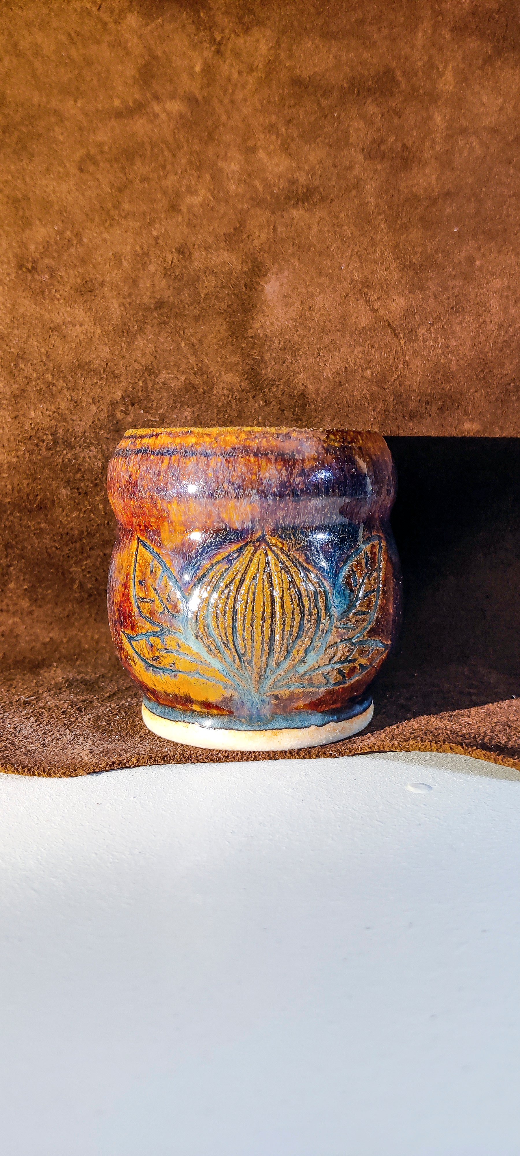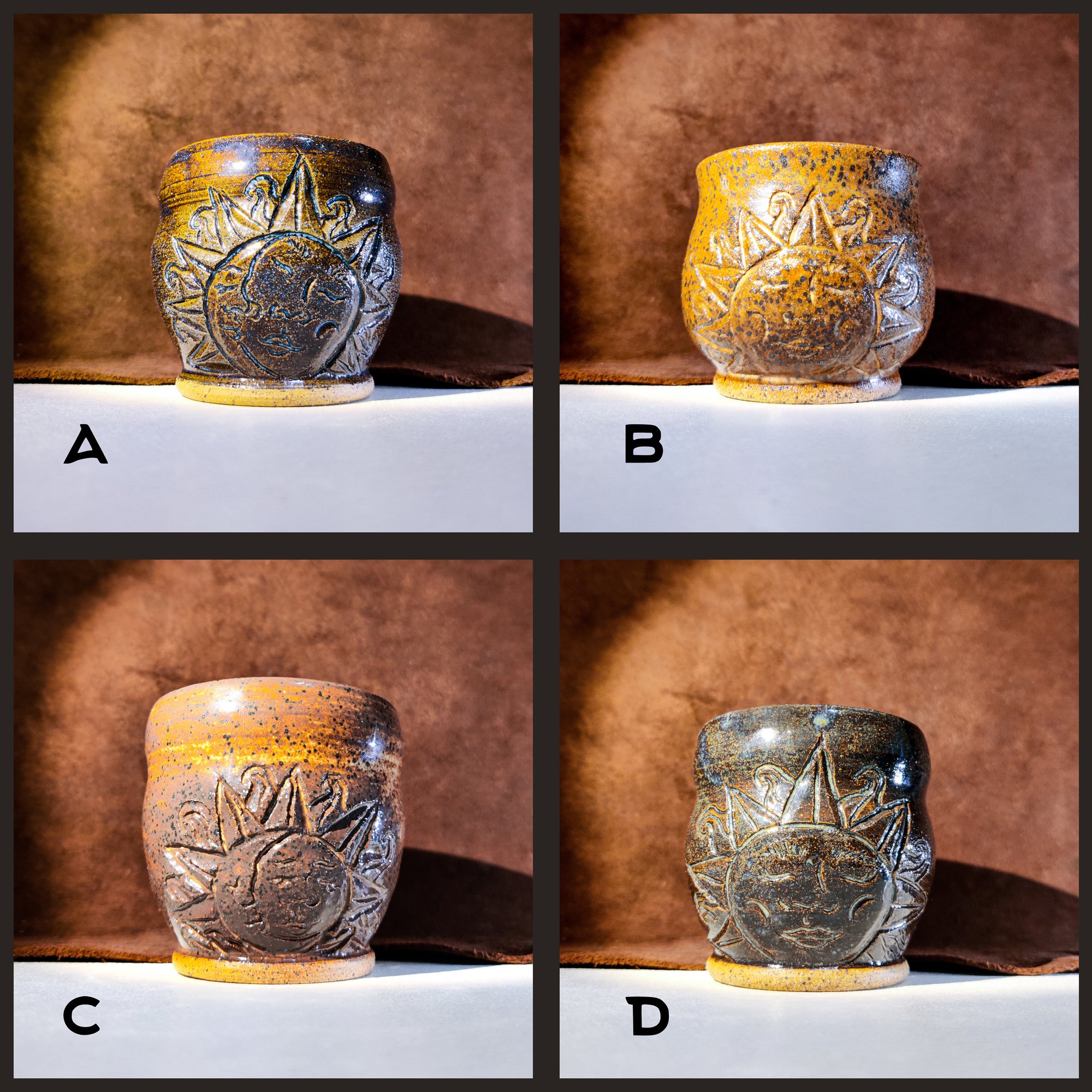 This collection of cups came to life with the specific intention to be used to drink Ceremonial Cacao. A series of 20 cups were made with 4 different designs each signifying a different representation of the energy of the Sacred Feminine.